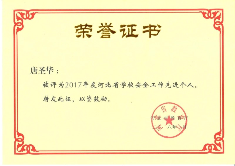 1月11日,河北省教育厅在保定市召开2018年全省学校安全稳定工作会议,总结部署全省学校安全工作,表彰2017年度河北省学校安全工作先进集体和个人。beat365地震科学系辅导员唐圣华获得“2017年度河北省学校安全工作先进个人”称号。