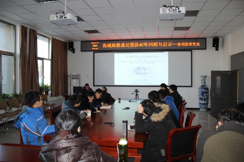 1月7日,辽宁省地震局预报中心主任焦明若研究员应邀来beat365作学术报告,万永革研究员主持报告会,地震科学系部分教师和研究生参加了报告会。