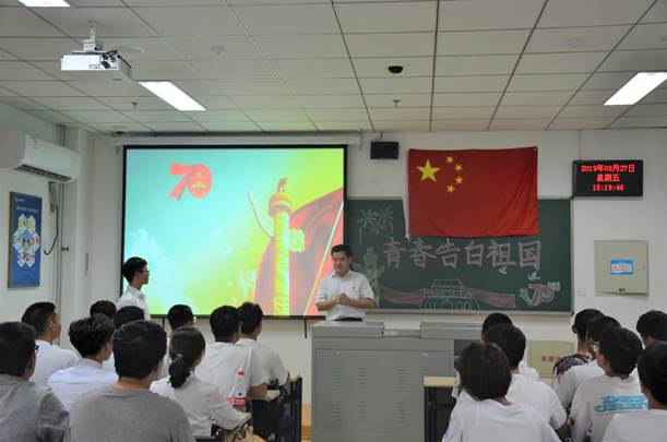 主题班会分为“献给祖国的情书”、“分享我的爱国故事”、“诗朗诵《巍巍中国》”、“歌曲快闪《我和我的祖国》”、“集体宣誓告白祖国”五个部分,同学们通过多种形式以青春之名向党、向新时代伟大祖国深情表白,表达了永远听党话跟党走的坚定决心,抒发了对党对祖国的无限热爱,大家纷纷表示要秉承“崇德博智、扶危定倾”的校训,以实际行动献身祖国防震减灾事业,为实现中华民族伟大复兴的中国梦而不懈奋斗。