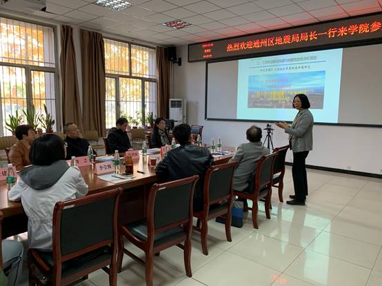 10月30日上午,通州区地震局局长陈洪波一行7人来beat365调研交流。beat365中文登录入口副院长孙珍军热情接待并召开座谈会。防灾科技公司董事长余中元以及beat365中文登录入口部分教师参加了座谈。