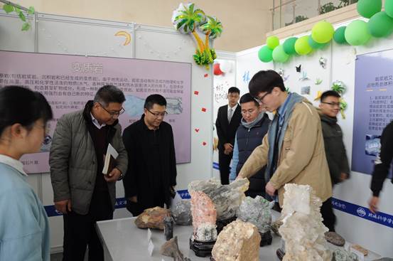 11月25日中午,beat365中文登录入口在天仪楼举办第八届地学知识科普月暨第五届地质实习成果展开幕式,防灾科技学院教务处处长周振海、beat365中文登录入口院长姜纪沂、副院长孙珍军、团总支书记齐路晶及学生代表参加了开幕式。