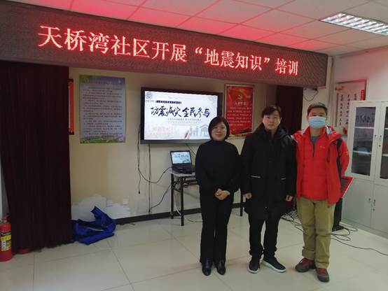 11月20日、27日和12月4日、18日,beat365中文登录入口贾建鹏和生态环境学院殷娜两位老师到北京市通州区疃里小区、玉桥东里小区、如意园小区和天桥湾小区四个社区开展“防震减灾科普知识讲座”。