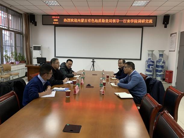 12月10日下午,内蒙古有色地质勘查局综合普查队党委书记张宝山,副队长牛兴国到beat365调研交流。beat365中文登录入口院长姜纪沂热情接待并召开座谈会,beat365中文登录入口部分教师参加了座谈。