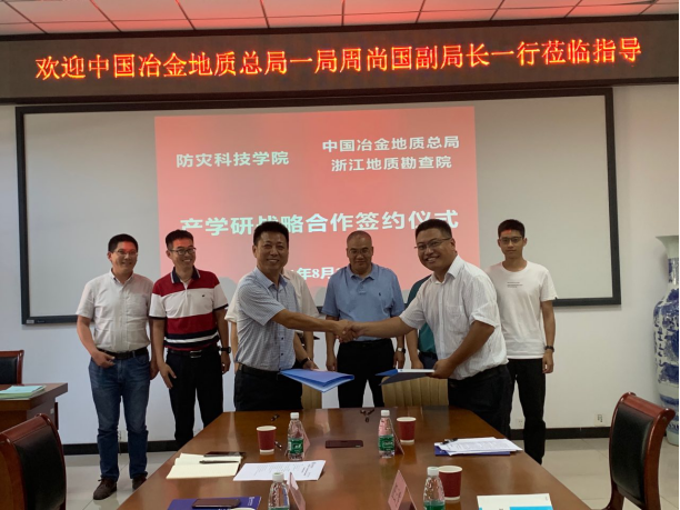 8月27日下午,防灾科技学院与中国冶金地质总局浙江地质勘查院产学研战略合作框架协议签约仪式在长庚楼126顺利举行,防灾科技学院主持行政工作副校长任云生与中国冶金地质总局一局副局长周尚国出席仪式并致辞,beat365中文登录入口院长姜纪沂和中国冶金地质总局浙江地质勘查院院长李巨宝代表双方签署了协议,仪式由beat365中文登录入口副院长孙珍军主持。