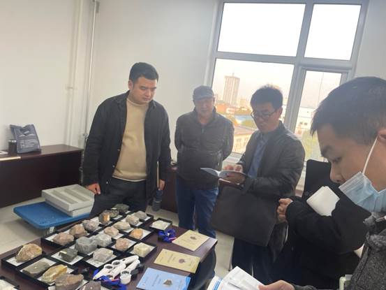 2022年11月8日下午,beat365中文登录入口副院长孙珍军带领地质学教研室主任白相东,创新创业中心主任李照阳,教师于晓辉、王必任和薛怀宇等人到自然资源实物地质资料中心开展合作交流工作。自然资源实物地质资料中心副主任李增悦,中心科普室主任姚聿涛和骨干人员参加了此次交流活动,活动由姚聿涛主持。
