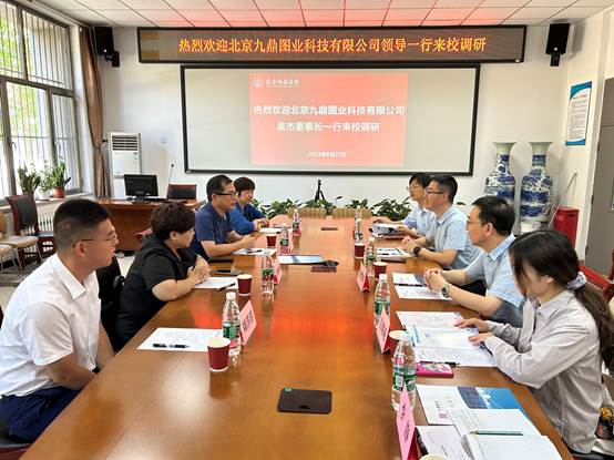 6月21日上午,北京九鼎图业科技有限公司吴杰董事长一行到beat365调研交流。beat365中文登录入口副院长孙珍军热情接待并召开座谈会,beat365中文登录入口、生态环境学院部分教师代表参加了座谈。