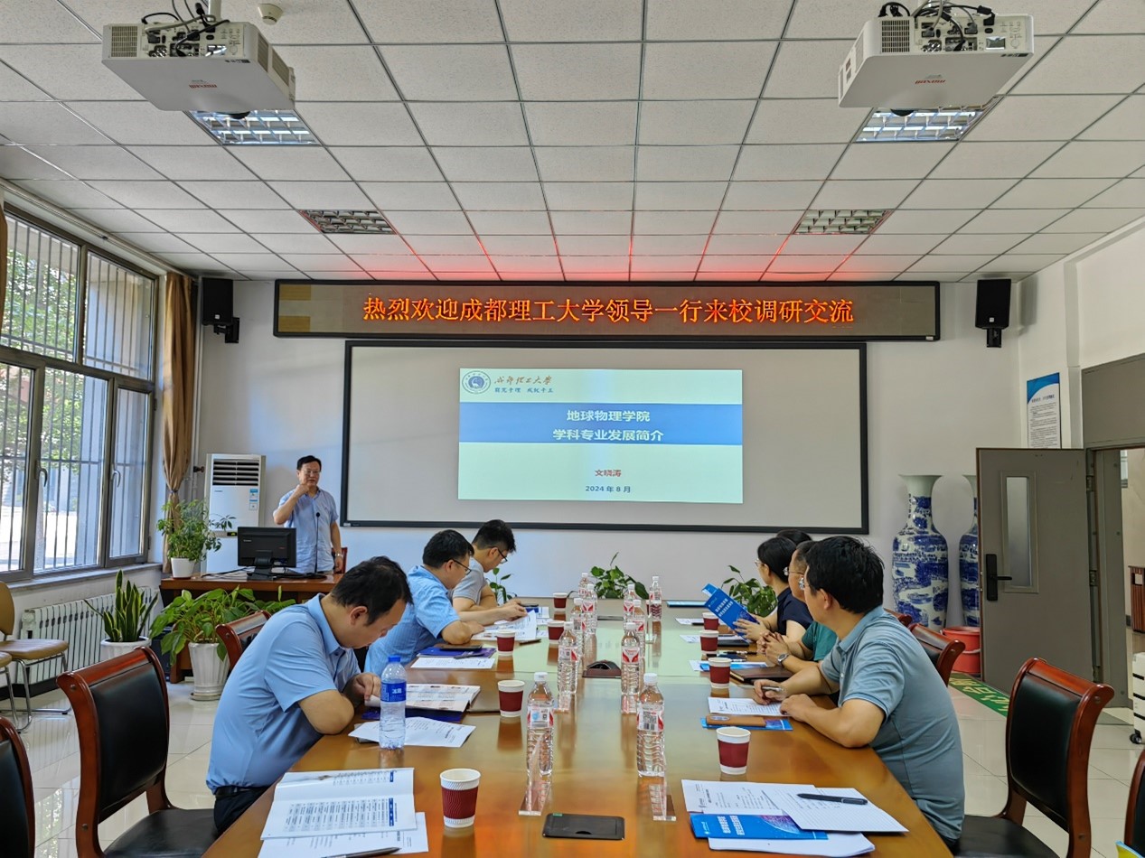 8月8日上午,成都理工大学地球物理学院副院长文晓涛一行5人到beat365调研交流。beat365中文登录入口勘查技术与工程专业负责人顾观文热情接待并主持座谈交流,地球物理学教研室主任、地质学教研室主任及部分骨干教师参加了座谈。