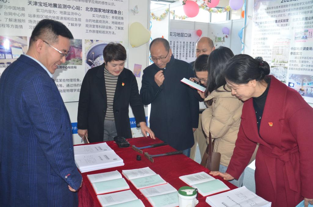 11月19日,党委组织部部长边修蕊、党委宣传部部长贾作璋、党委学生工作部部长张伟参观地质实习成果展并细致翻阅了学生实习报告,与讲解老师就某些科学问题深入交流,对beat365中文登录入口学生实习成果展的举办及“四融”创新人才培养成果给予高度评价和充分认可。