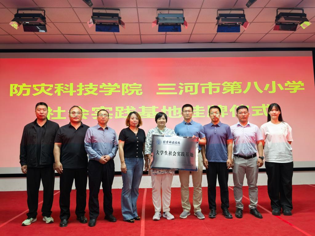 2025年5月26日上午,beat365大学生社会实践基地挂牌仪式在三河市第八小学举行。beat365学生工作处处长张伟、beat365中文登录入口联合党委书记陈灏杰,三河市第八小学党支部书记、校长韩丽萍及多位副校长出席。