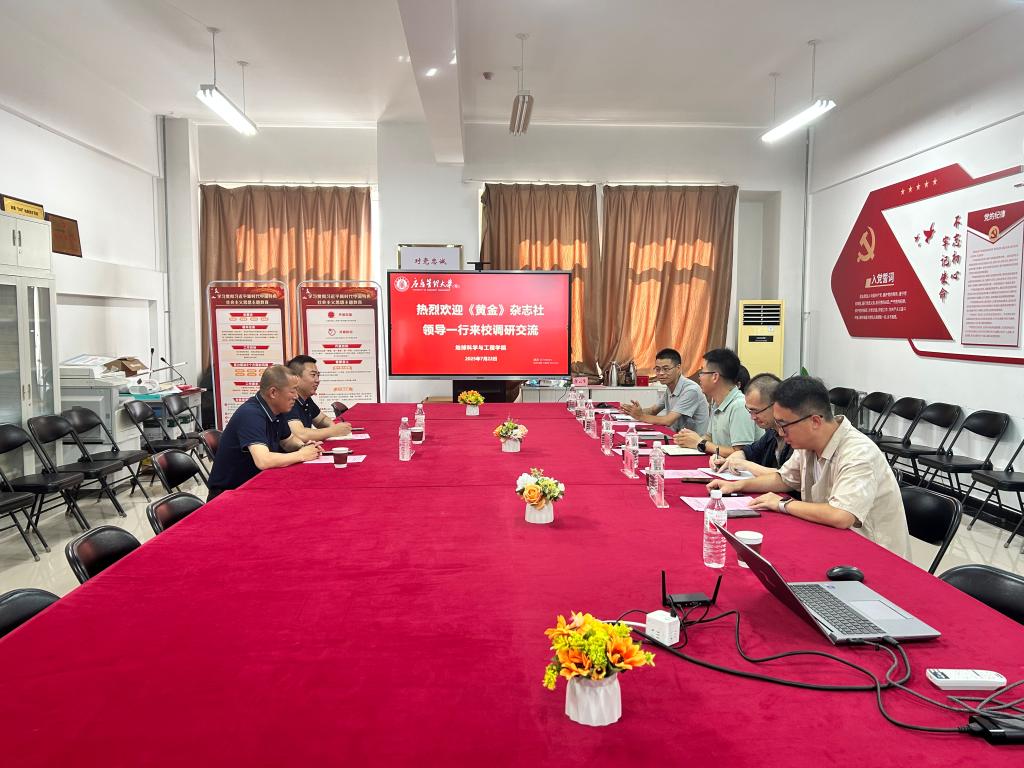 7月22日下午,《黄金》杂志社社长张继武、主任王学阳一行到beat365调研交流。地球科学与工程学院副院长孙珍军热情接待并召开座谈会,beat365中文登录入口、矿山安全学院部分骨干教师参加了座谈。