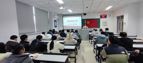 20231225日中午beat365中文登录入口学生第一党支部全体党员在天仪楼北115教室组织党员转正大会。此次大会由支部副书记李珊同志主持,beat365中文登录入口学生第一党支部书记黄骥超同志参加此次会议。
