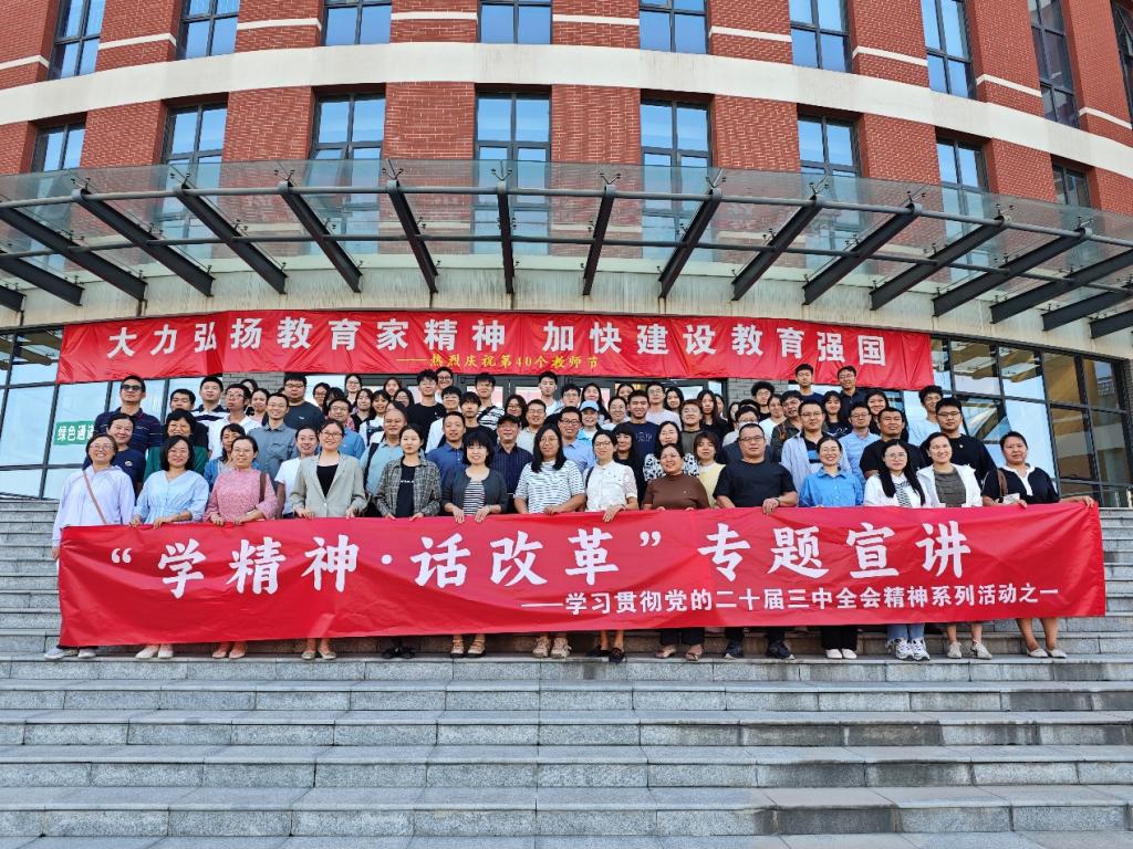 李君教授从坚持党的领导这个关键、推进党和国家治理体系和治理能力现代化这个要害、完善中国特色社会主义制度这个核心切入,对全会精神进行系统阐释和深入解读。报告讲清楚了全会的重大政治意义、理论意义、实践意义,深入宣讲了习近平总书记关于全面深化改革的一系列新思想、新观点、新论断,深入宣讲了习近平总书记在党的二十届三中全会上的重要讲话精神,深入宣讲了全会《决定》提出的进一步全面深化改革的重大举措,深入宣讲了贯彻落实全会精神的基本要求,帮助学院师生进一步深化了对全会精神的理解。