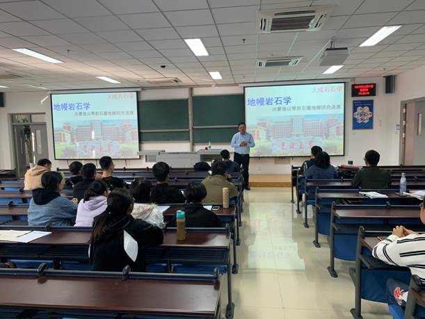 报告会上,张老师向在座师生介绍了“幔源岩石的类型、矿物组成”以及“地幔岩产出的构造背景和相关样品获取途径”,并从“地幔熔融过程”、“地幔交代作用”等角度解释了幔源岩石的成因机制,并就“橄榄岩Re-Os同位素测试技术”“兴蒙造山带古老岩石圈地幔的东西差异”等问题与在座师生进行了讨论。