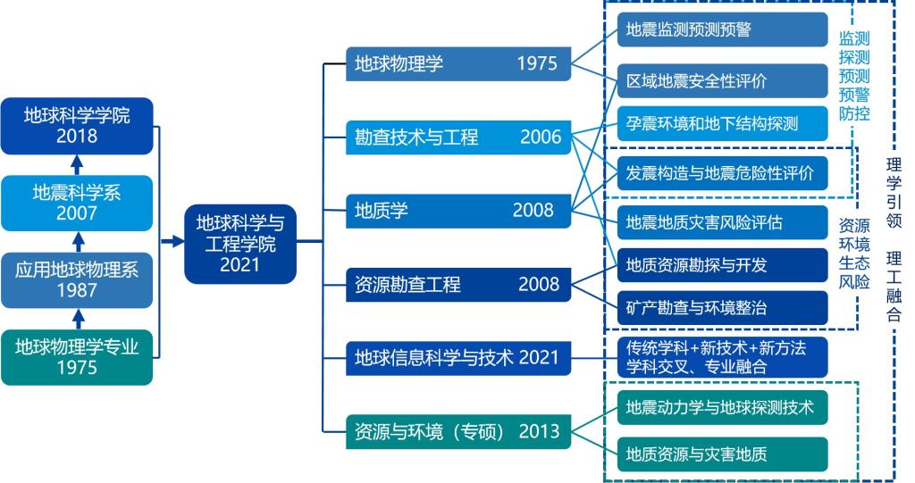 学院深入贯彻习近平总书记“两个坚持,三个转变”的指导思想,面向防灾减灾和应急救援,聚焦地震及地质灾害,按照“巩固传统学科优势,凸显防灾减灾特色,发挥理学引领作用,支撑新兴学科发展”的思路,以理为主、理工交叉、科教融合,坚持特色发展,建设国家级一流本科专业和行业特色鲜明的国家一流水平学科,加强应急管理主干类专业内涵建设,构建防灾减灾特色高级应用型复合型人才培养体系,努力将学院建成国内一流、国际知名、特色鲜明的地学人才培养和地震地质灾害风险防控科技创新基地,为学校全面建设应急管理人才培养、科技创新、教育培训“三大高地”发挥骨干支撑作用。